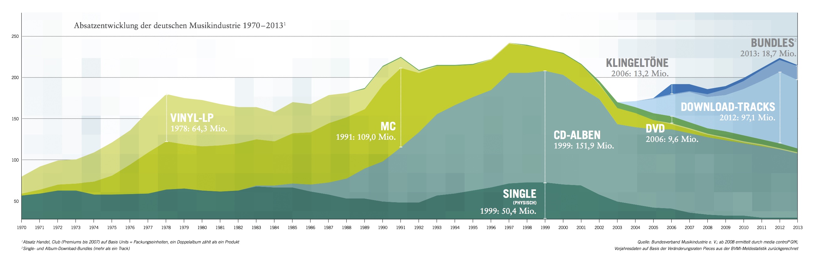 War von Beginn an die Schallplatte für mehr als 100 Jahre das Hauptträgermedium der gesamten Musikbranche, erfolgte spätestens mit Einsetzen der Musikkassette und der CD 1984 ein Wandel, der bis heute andauert.