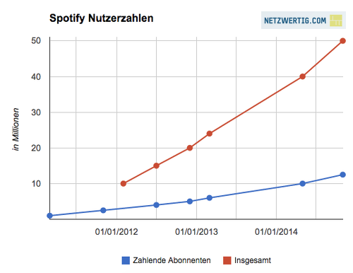 Nach der Gründung im Jahr 2006 durch Daniel Ek und Martin Lorentzon wurde die Software 2008 erstmalig zum Download freigegeben. Bereits ein Jahr später hatte Spotify eine Million Nutzer. Mittlerweile kann sich das Programm mit insgesamt 60 Millionen Mitgliedern und einem Umsatz von 740 Millionen Euro im Jahr 2013 defintiv als Marktführer der Musikstreaming-Dienste bezeichnen.